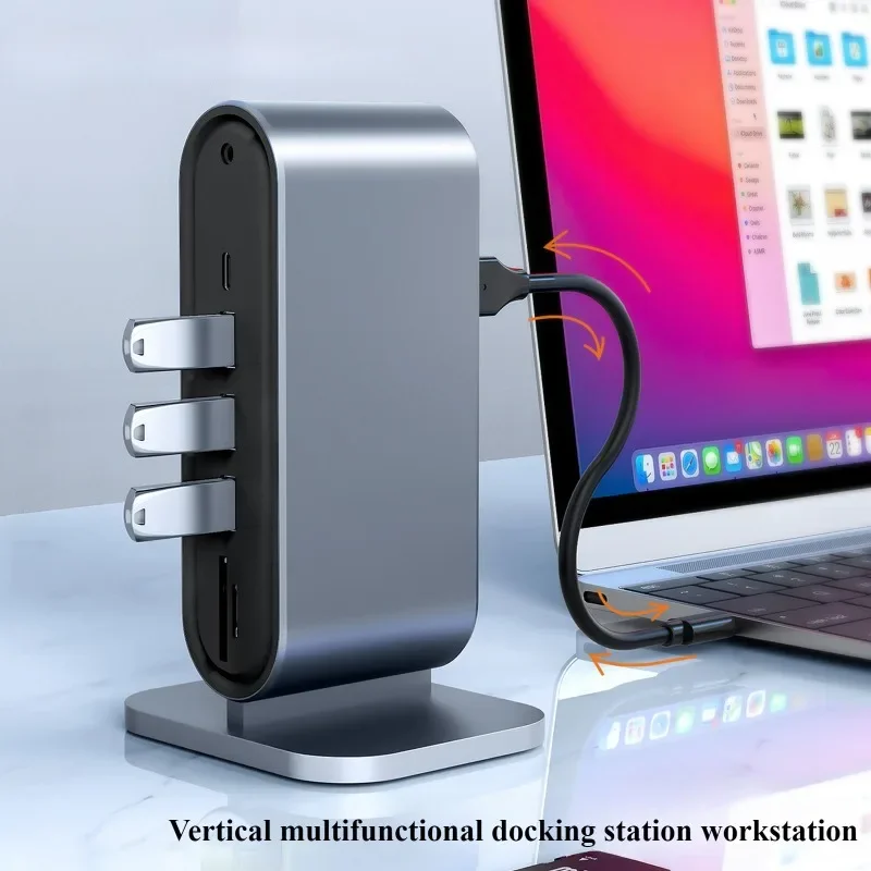 Док-станция USB C 12 в 1, конвертер расширения концентратора, вертикальный многофункциональный интерфейс, база для ноутбука