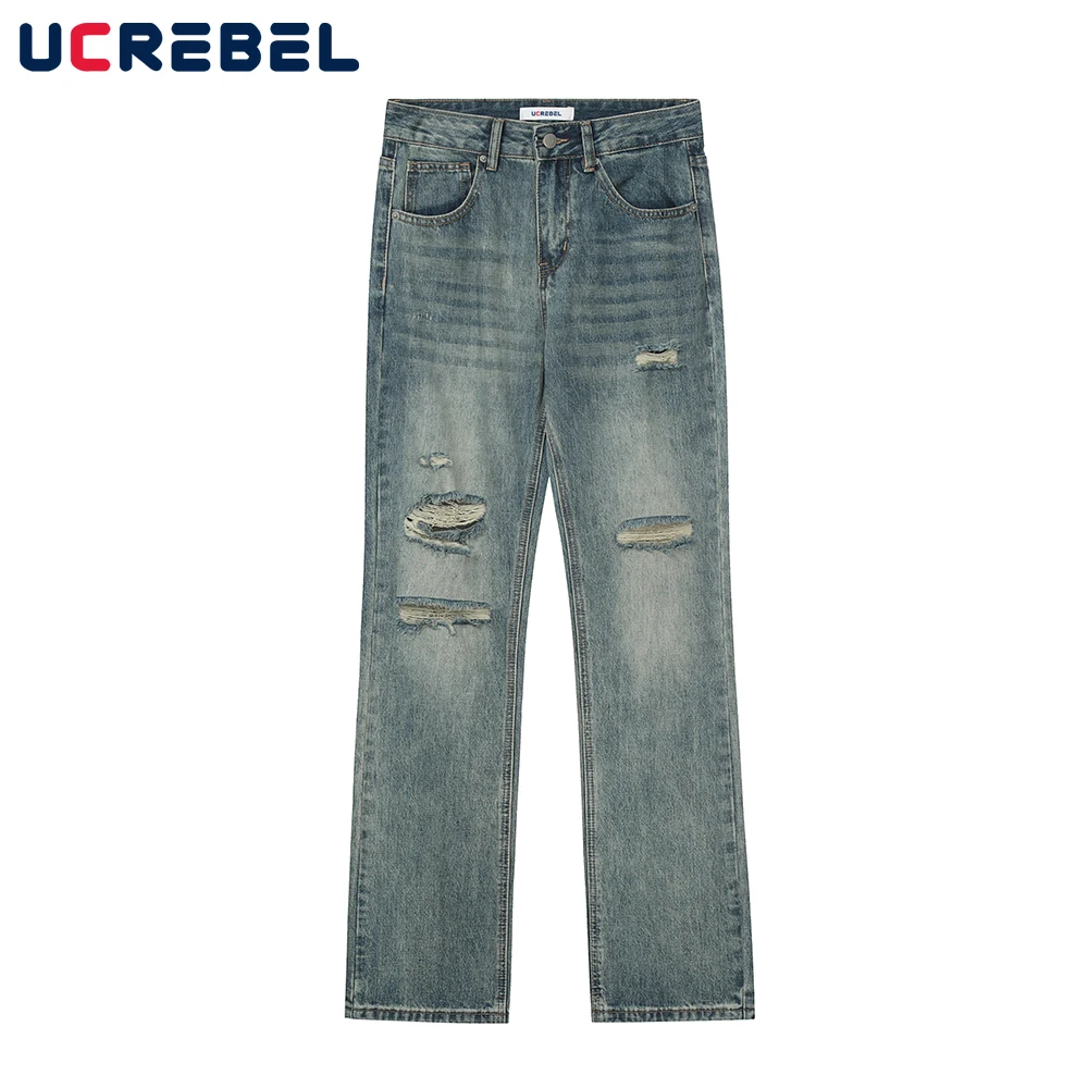 Рваные джинсовые брюки с дырками, мужские весенние потертые повседневные Прямые джинсы