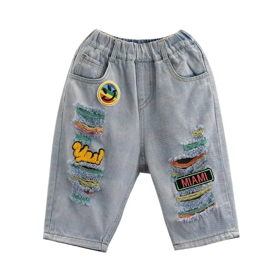 Рваные джинсовые шорты для мальчиков, Новинка лета 2022, рваные Повседневные детские шорты
