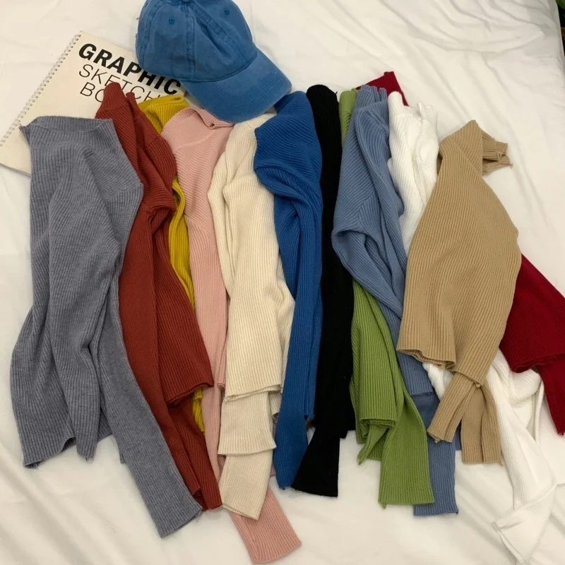 Реальное фото осенней одежды Новинка корейский стиль водолазка нижняя рубашка