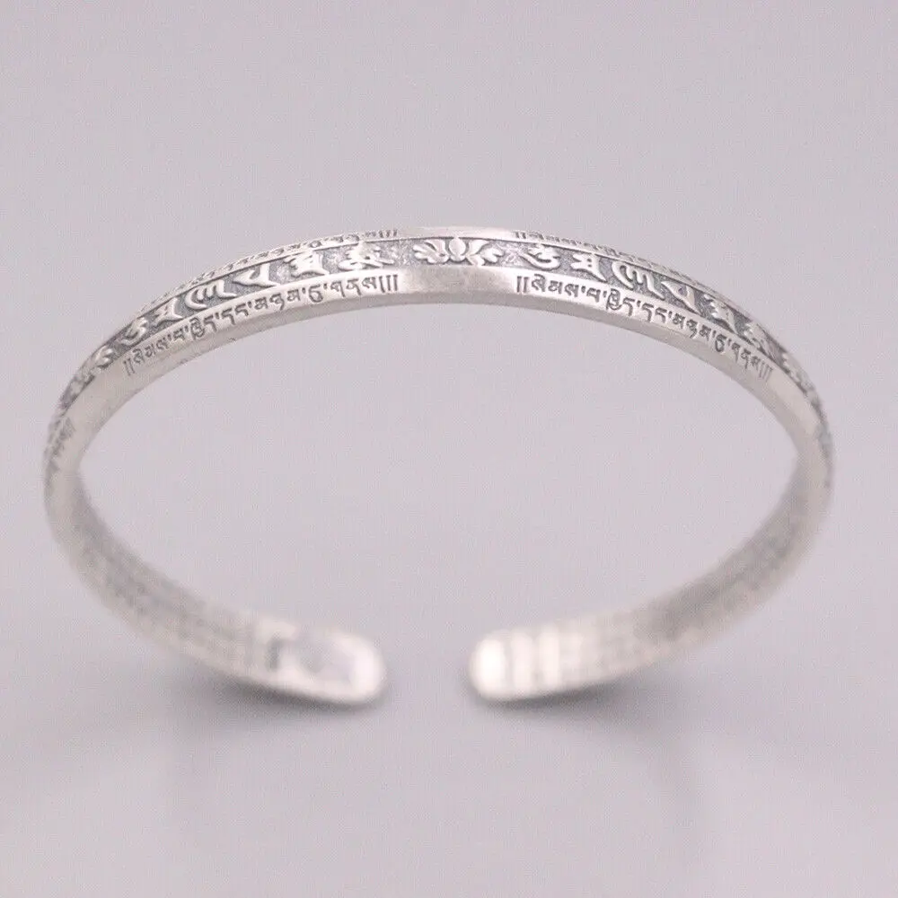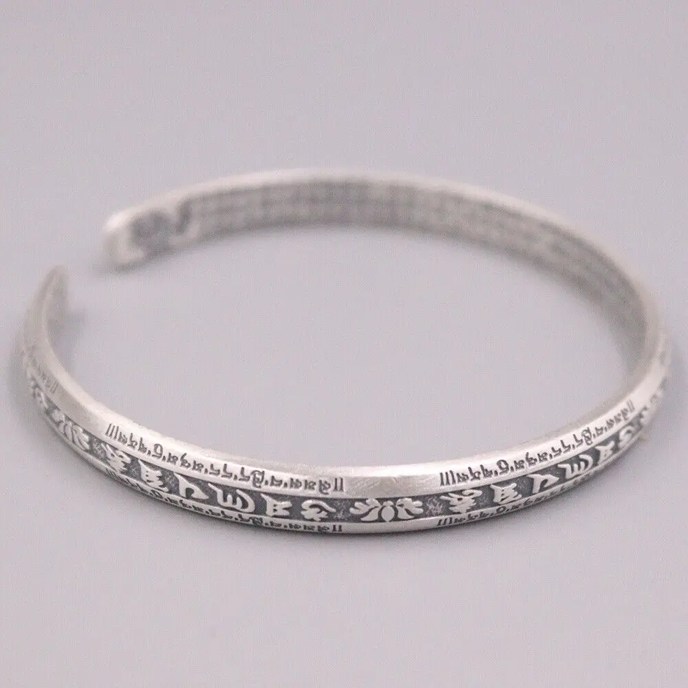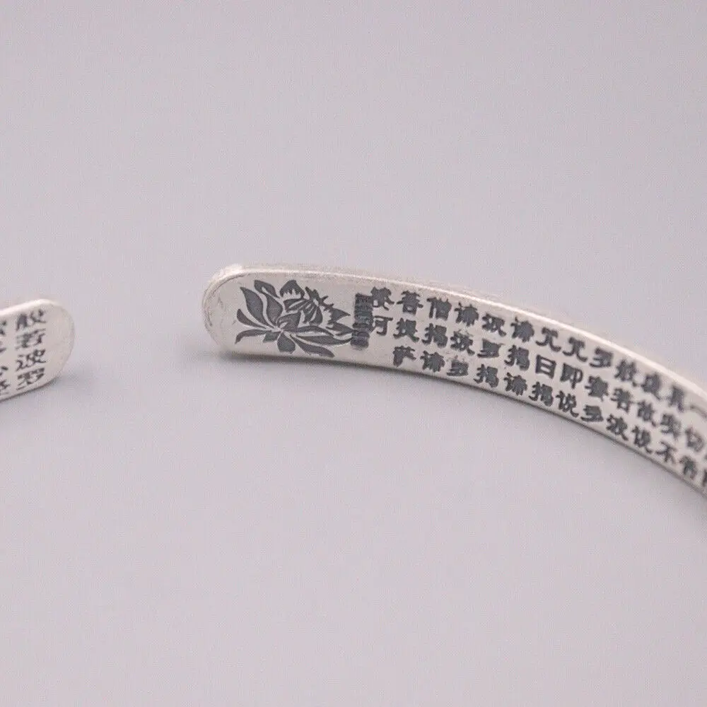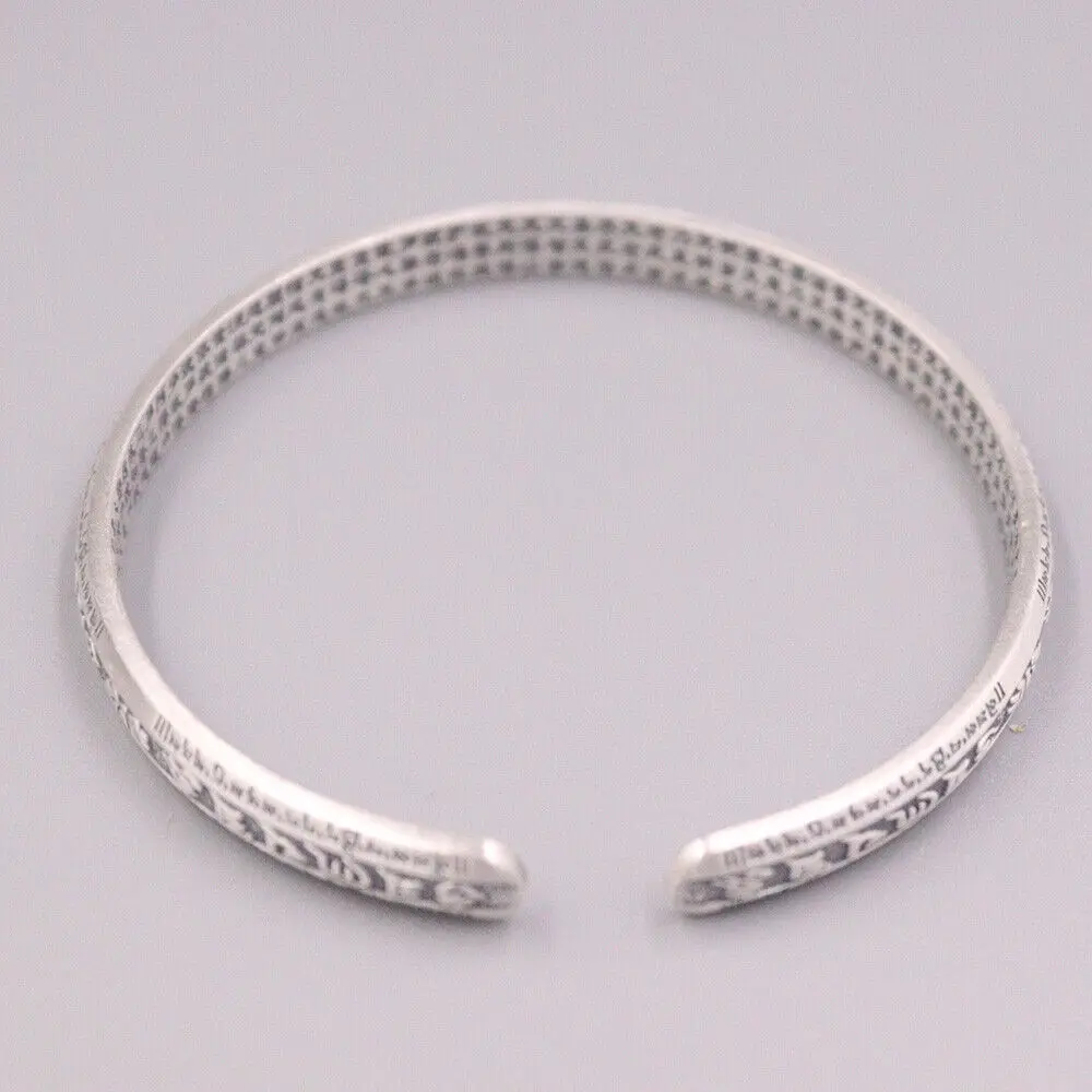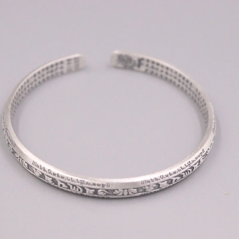 Реальный 999 тонкий серебряный браслет 6 мм сердца Sutra шаблон манжета 2,36 дюймов диам. Ручная работа