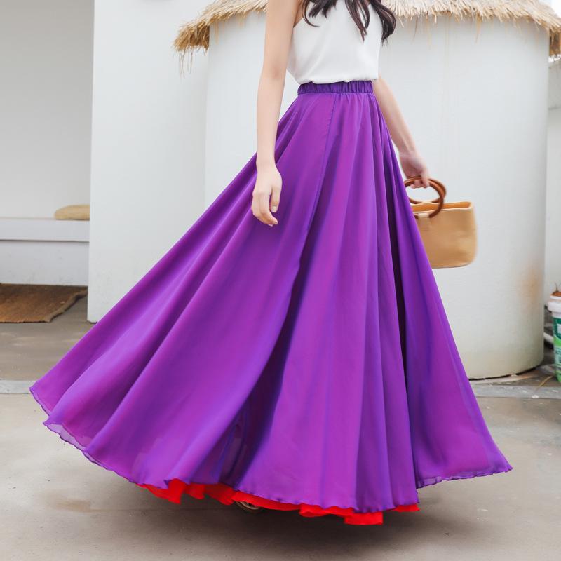 Реверсивная шифоновая А-силуэтная юбка для танцев - Весенняя двухцветная восьмиметровая миди-юбка с подолом для пляжного отдыха 100cm (540°) ярко-красный/фиолетовый