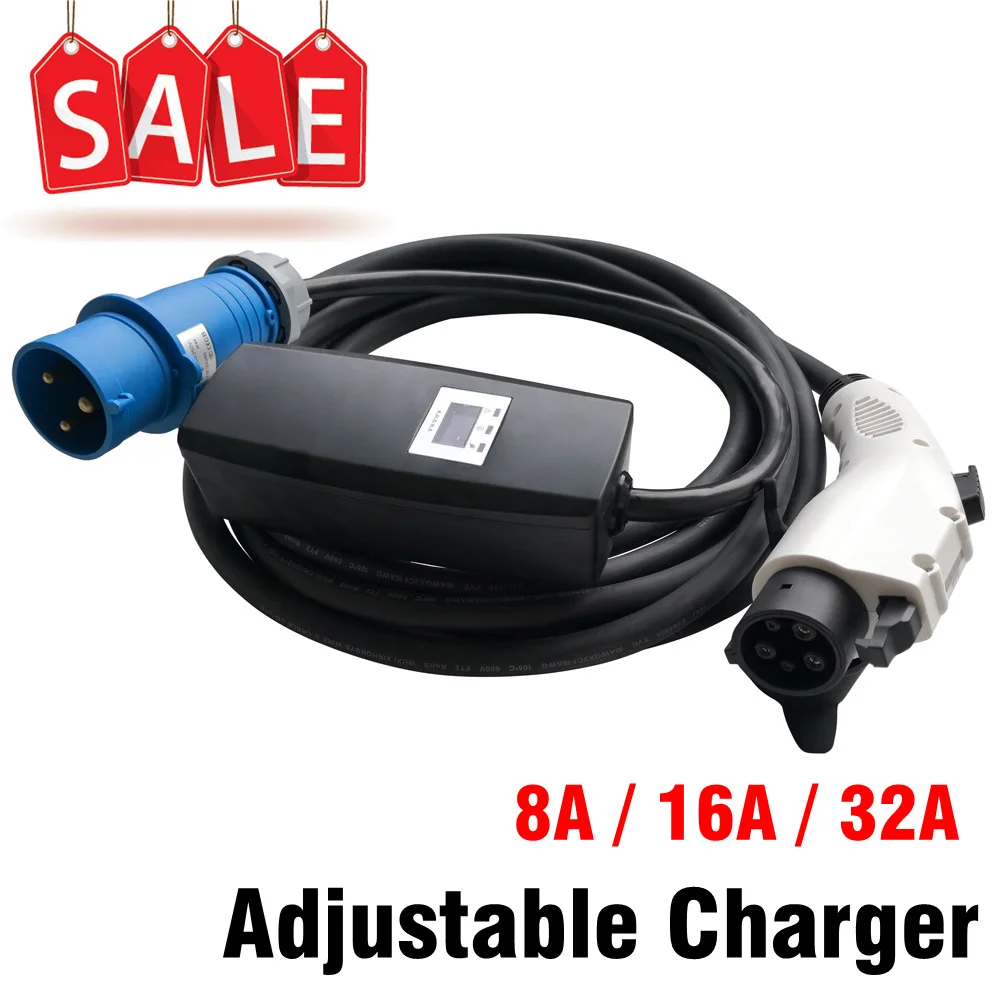 Регулируемое зарядное устройство для автомобиля 32A EV SAE J1772 тип 1 с красно-синей CEE IP55 16A 8A, портативное зарядное устройство EVSE для Toyota Mia Eletcirc автомобиля