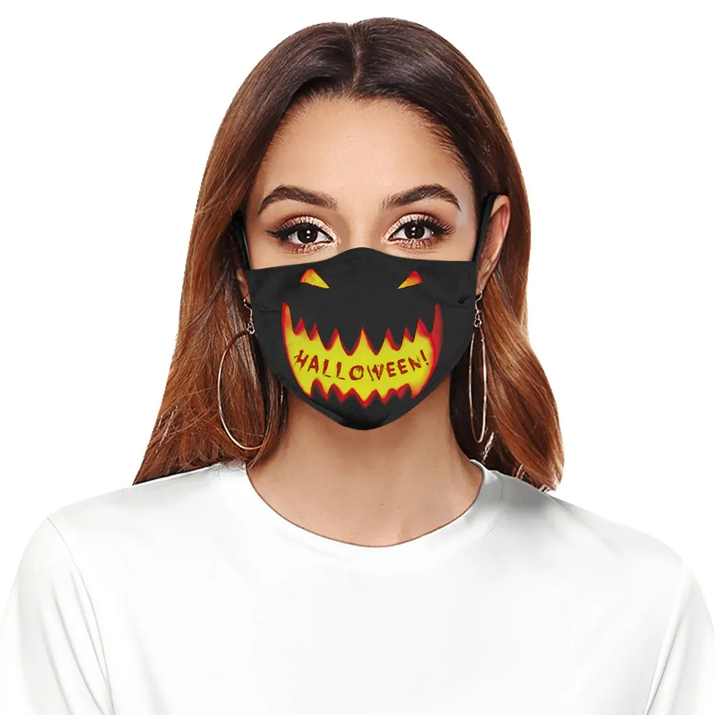 Регулируемые ветрозащитные маски унисекс, многоразовая маска для лица с принтом на Хэллоуин, регулируемая эластичная веревка, хлопковая ма...