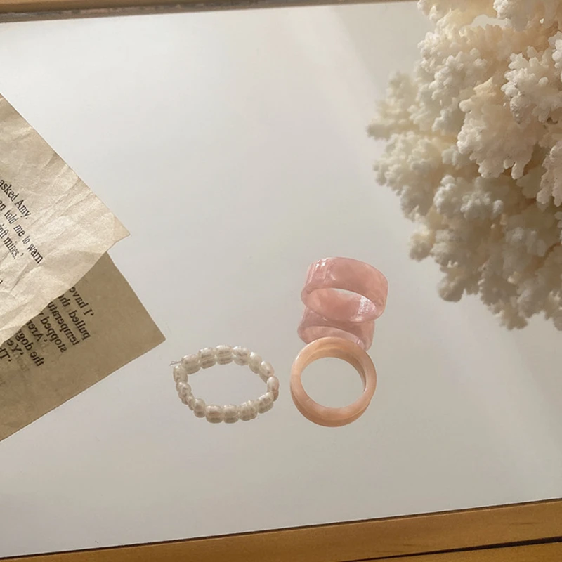 2021New 3pcs/set Retro Fashion Beige Tortoiseshell Resin Natural Pearl Finger Rings for Women Girls Party Jewelry