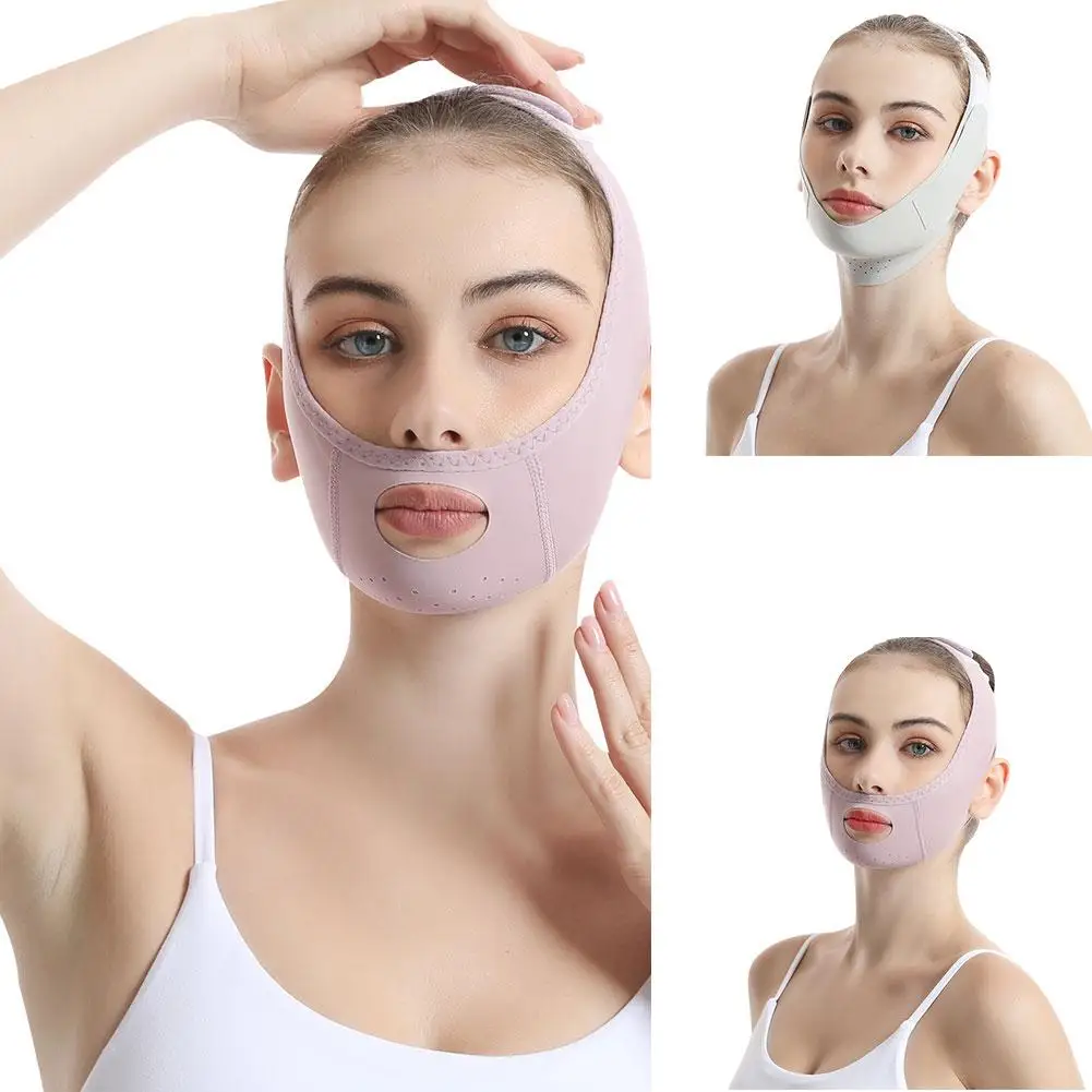 Регулируемый бандаж для похудения, подтягивающий пояс для лица, дышащий подтягивающий материал для сна, V-образный вырез D2a4