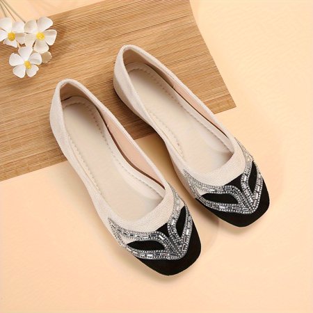 Women s Rhinestone Decor Flat Shoes Elegant Square Toe Slip On Shoes Lightweight & Comfortable Shoes