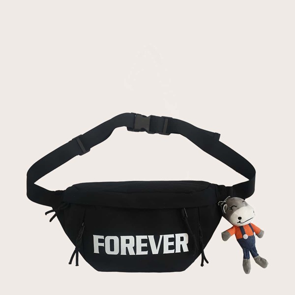 Чёрный Нейлон буква Мужская поясная сумка, size features are:Bust: ,Length: ,Sleeve Length: