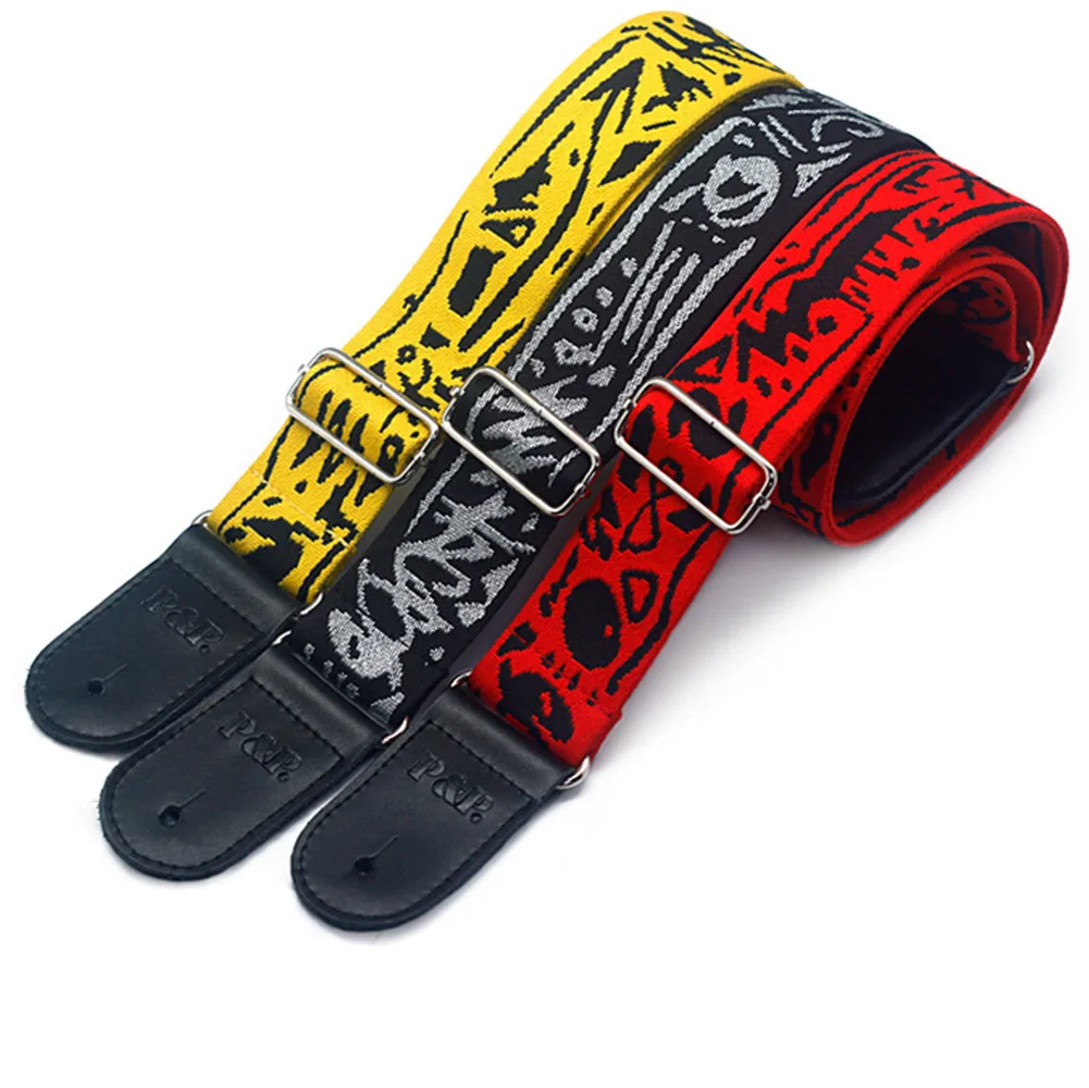 Регулируемый ремень для гитары из чистого хлопка толстый жаккардовый ремень для акустической гитары P & P кожаный вышитый аксессуар 84 см-138 с...