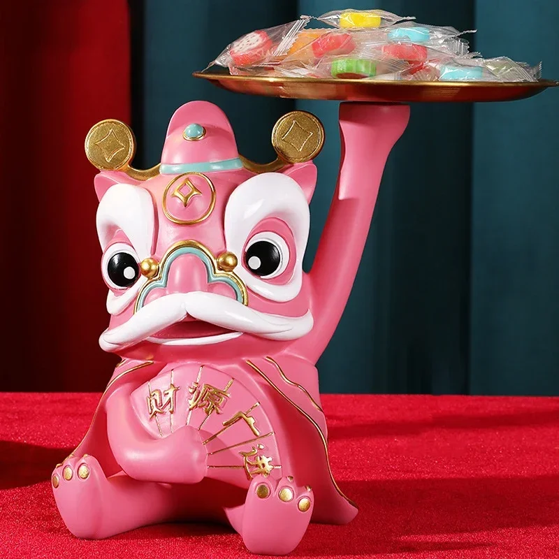 Chinese Lion Dance Ornament Entryway Desktop Key Tray Jewelry Cosmetic Storage Saucer Decoration Candy Plate