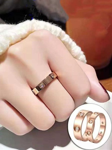 high version hong kong jewelry 750 rose gold ring for male and female couples colorless plated diamond set wedding gifts, Silver