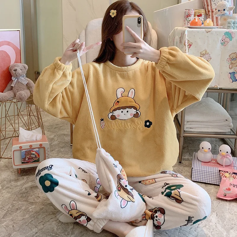 Редис Детский жакет из денима для девочки; Тряпичным мешком пижамы женские осень-зима из плотного кораллового флиса детская одежда в Корейс...