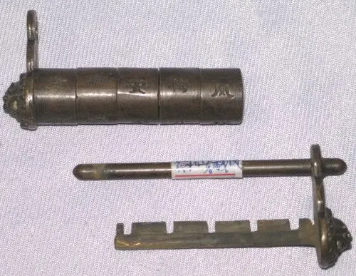 Редкий китайский стиль латунь резной Пароль замок/ключ длинный Бесплатная доставка