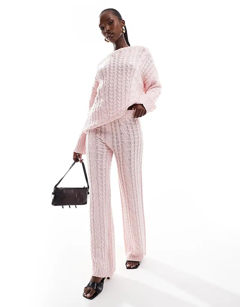 Kaiia – Трикотажные брюки прямого кроя розового цвета с узором «косы», комплект