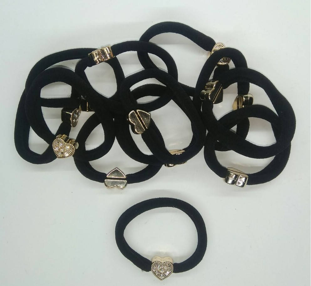 Резинка для волос микрофибра, плотная, хорошего качества черная с украшением в форме сердца с камушками.
