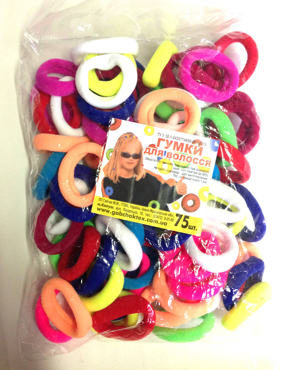 Резинки для волос Калуш нейлон (75 шт) д.3,6 см, цветные яркие, Разные цвета