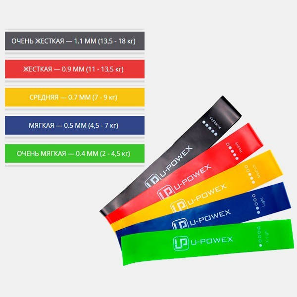 Резинки для фитнеса и спорта U-Powex 5 резинок + чехол в комплекте