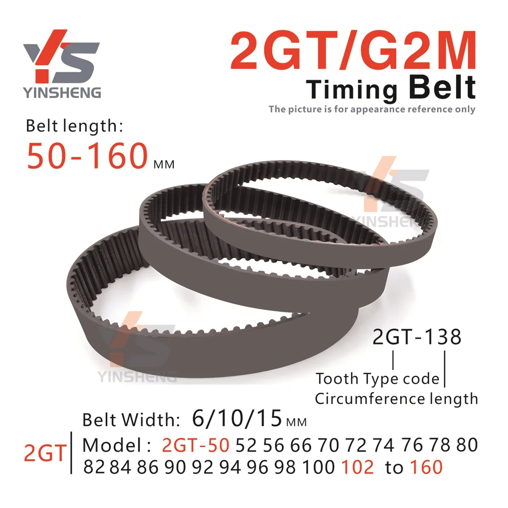 Ремень ГРМ 50-160 мм, 2GT, используемый для DIY/ЧПУ/3D-принтеров, модели 50-2GT, 52-2GT, 56-2GT, 66-2GT до 160-2GT, зубчатый ремень G2M