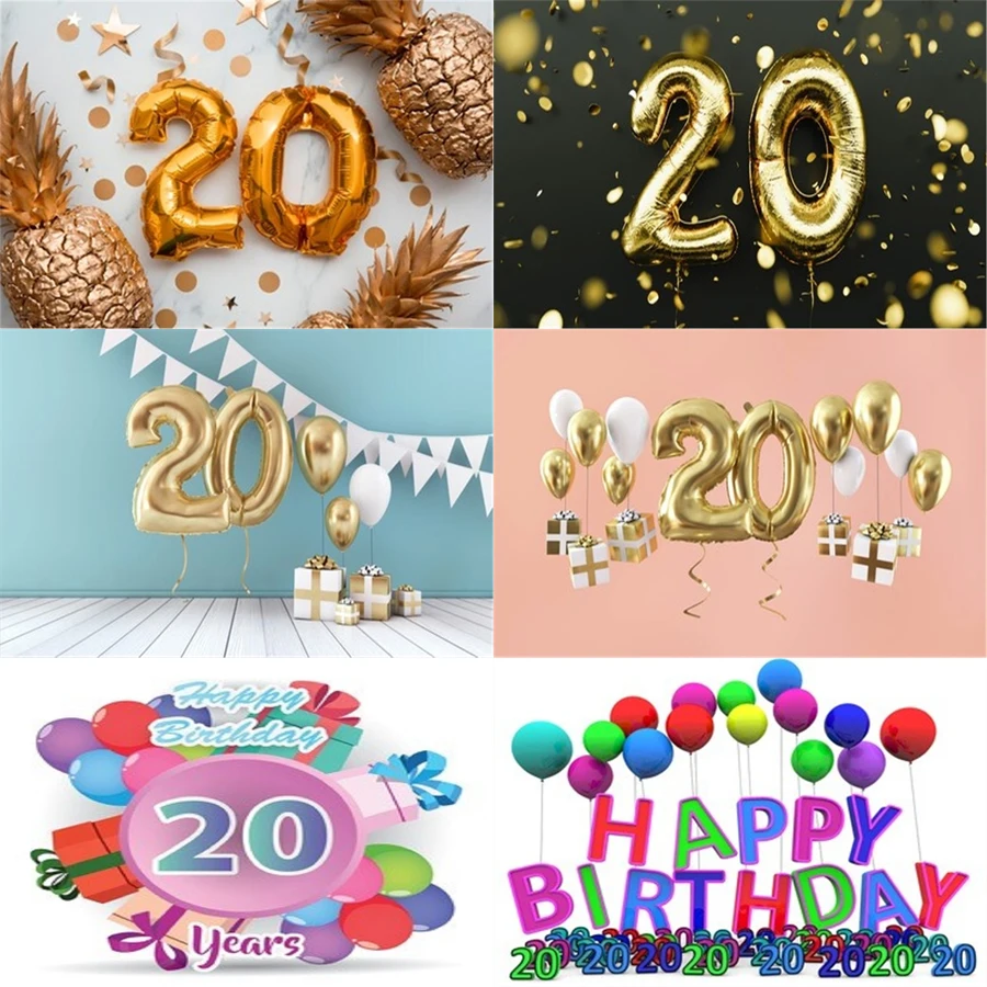 Реквизит для фотостудии Виниловый фон для фотосъемки с изображением воздушного шара в честь Дня рождения 20 лет украшение для дня рождения 20