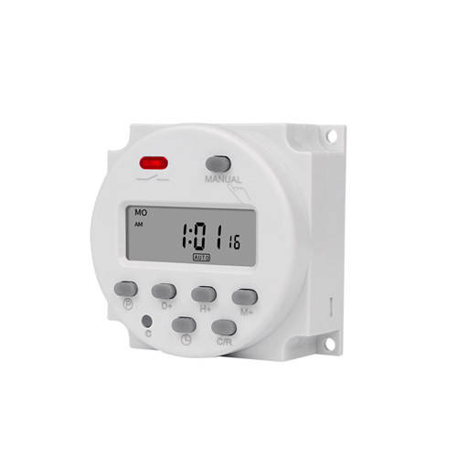 Программируемый недельный таймер CN101A для замыкания/размыкания электрической цепи согласно установленным интервалам времени. Оснащен ЖК-дисплеем. Имеет нормально разомкнутый контакт и четыре 3.2 мм отверстия для монтажа.Применяется для управления осветительными приборами, технологическими и промышленными процессами, электронагревательными приборами и т.д.Возможность принудительного ручного управления Диапазон программируемого времени: 1 мин - 168 часов Число программ управления (включений/выключений): 17 Минимальный интервал срабатывания программы: 1 мин Погрешность временных интервалов: не более 1 с/сутки Рабочее напряжение: 180-250 В (50/60 Гц) Максимальный ток нагрузки: 16 А Максимальная мощность: 2 В·А Механическая износостойкость: не менее 10^7 циклов вкл/выкл Электрическая износостойкость: не менее 10^5 циклов вкл/выкл Рабочая температура: -10~40 °C (влажность 35-85%)LED-индикатор работы Размер: 6 х 6 х 3 см Инструкция на англ. языке в комплекте