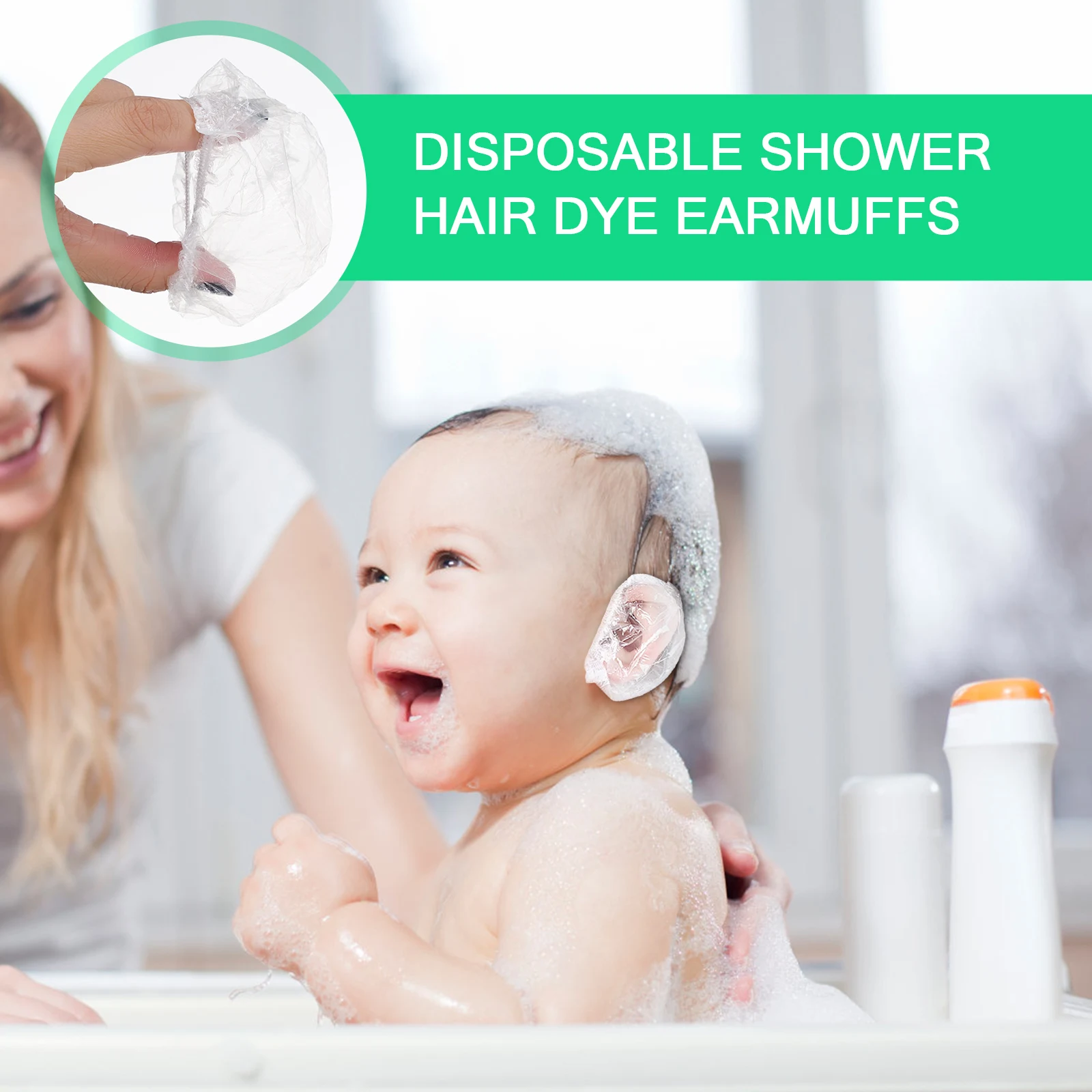 200 шт. одноразовые чехлы для душа, краска для волос, прозрачные эластичные полиэтиленовые пластиковые шапочки для ушей для мужчин и женщин, домашний салон, защита ушей