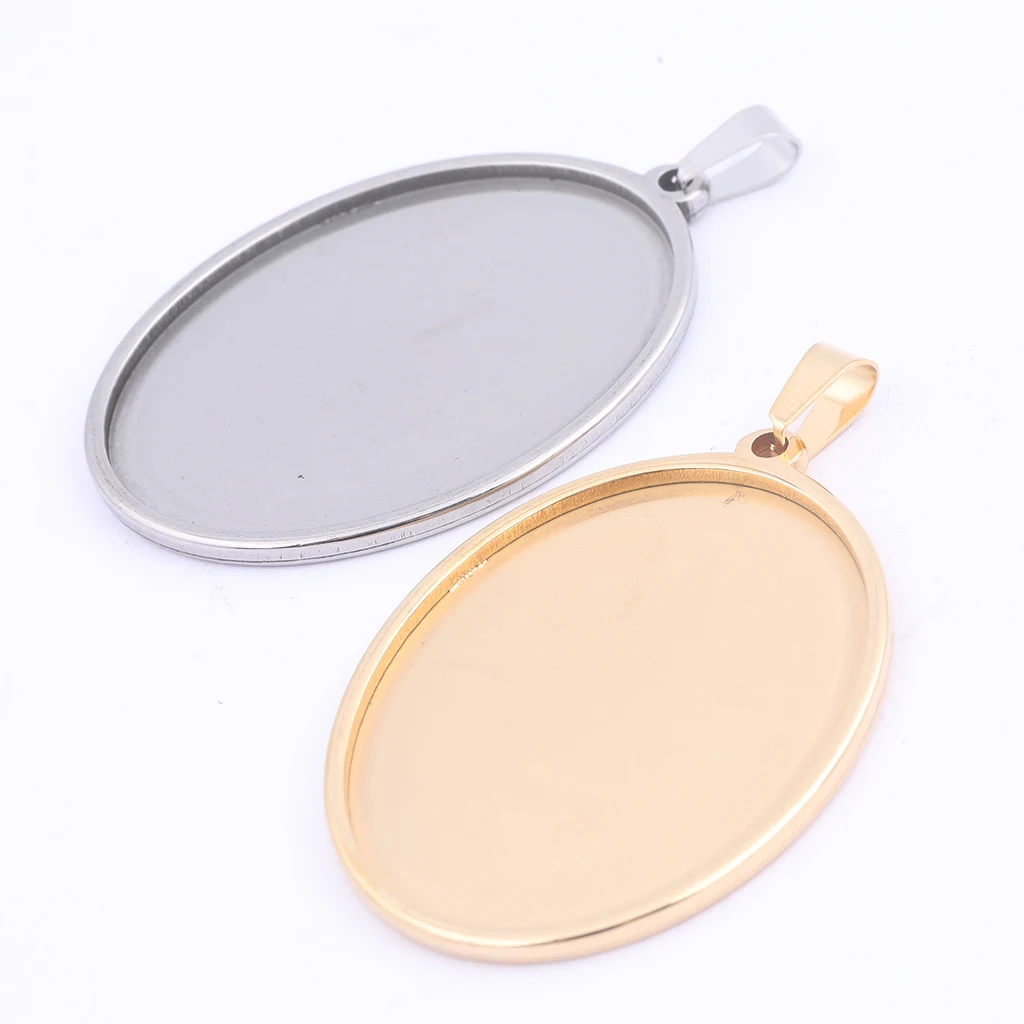 5pcs stainless steel oval cabochon base setting 30x40mm pendant tray bezel diy necklace blanks for jewelry making