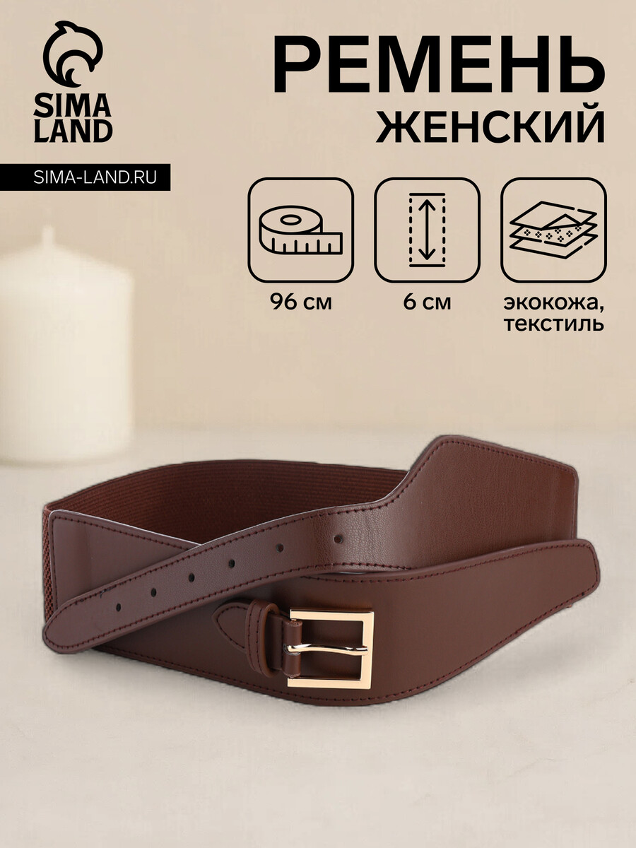 Ремень женский, ширина 6 см, пряжка металл, цвет коричневый.