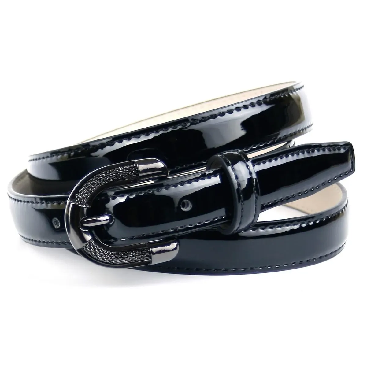 Ремень кожаный Anthoni Crown, узкий ремень из лакированной кожи, декоративная застежка, черный