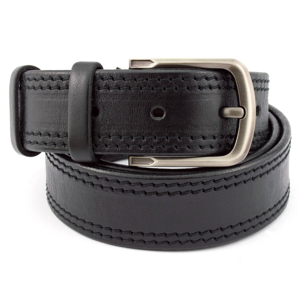 Ремень мужской кожаный под джинсы простроченный черный KB-40-02 (130 см)