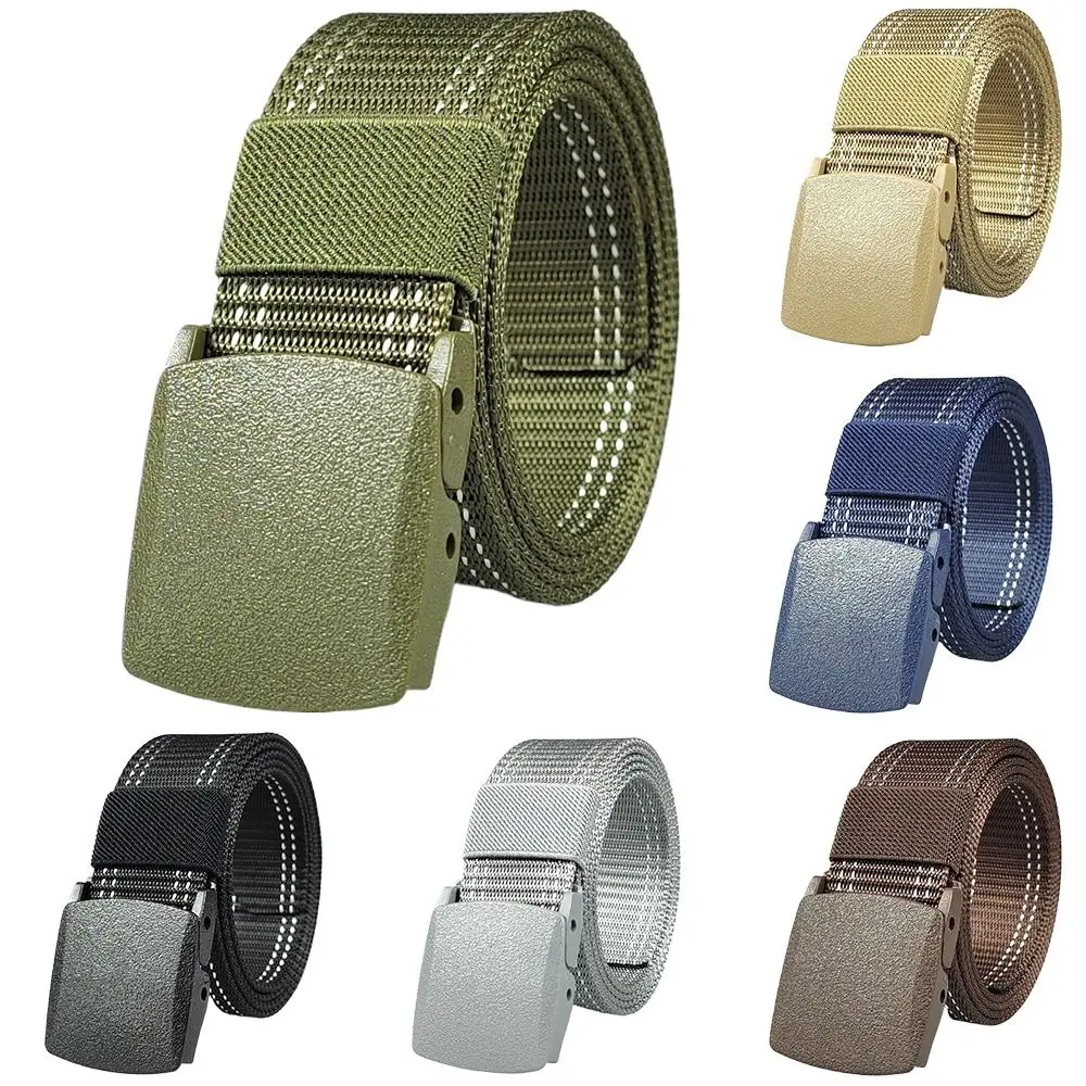 Ремень мужской с автоматической пряжкой, тактический брезентовый пояс в стиле милитари, нейлоновый, армейский, не содержит металла, для улицы