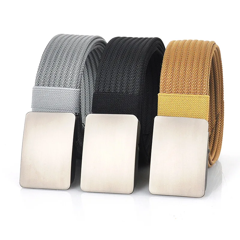 Ремень мужской с гладкой пряжкой из сплава, простой удобный нейлоновый плетеный пояс для брюк, модный трендовый пояс для молодых людей, чёрный серый