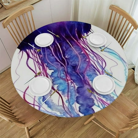 QFMY Jellyfish Round Table Cover 100% Polyester Fiber Full Width Single-Sided Printing 38-42
