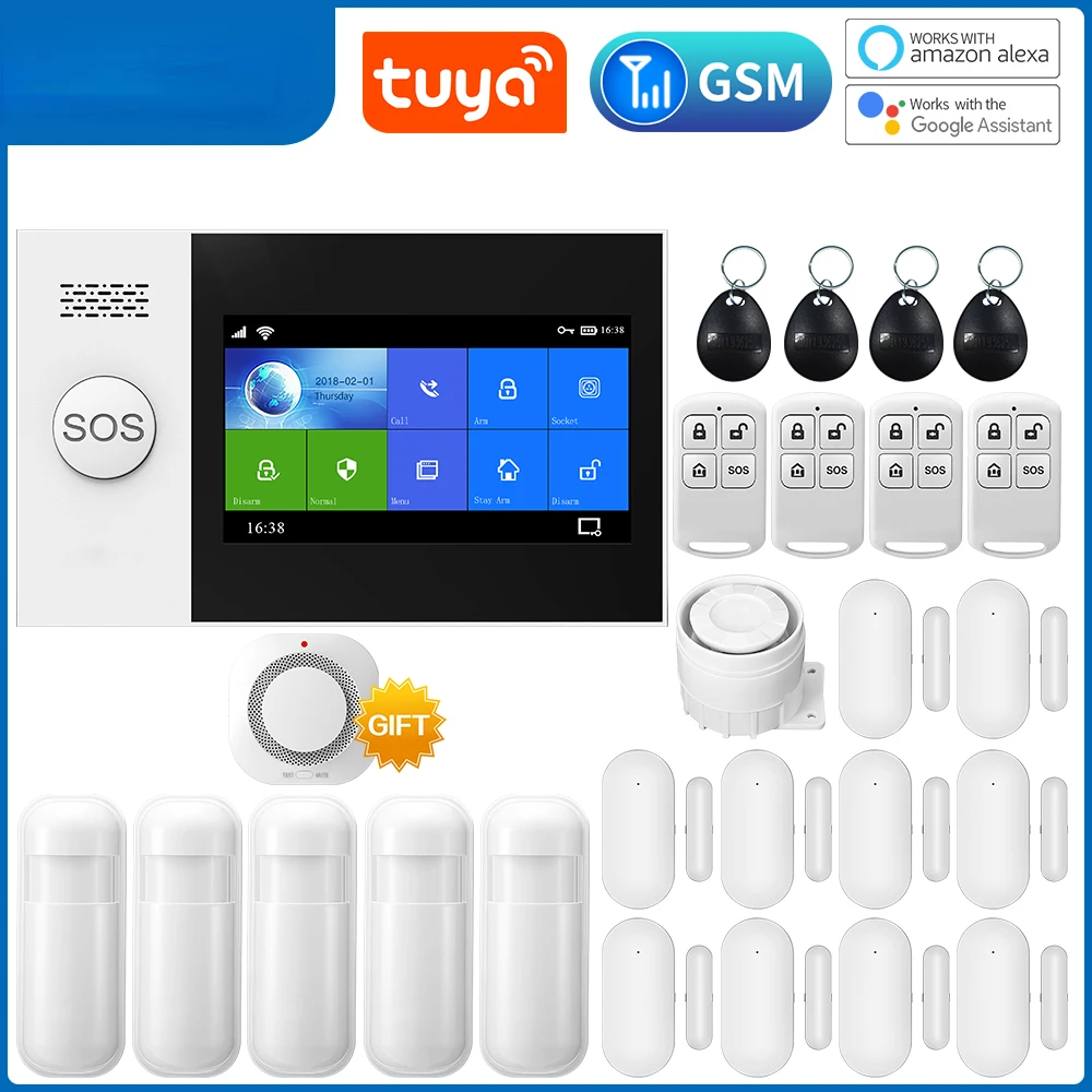 Wireless Wifi GSM Home Security Alarm System Smoke Detector Burglar Alarm With Motion Sensor For Tuya SmartLife APP Home Alarm