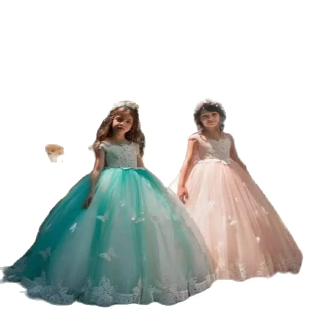 Платья для девочек с цветочным принтом, прозрачные платья принцессы с вырезом лодочкой и аппликацией для девочек, наряды с бантом и поясом н...