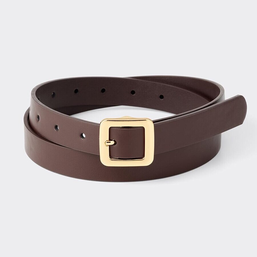 Ремень с металлической пряжкой мини-квадрата GU, коричневый