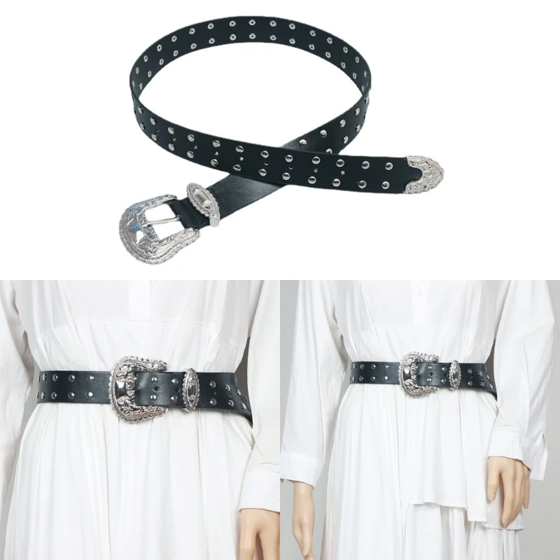 Ремень с шипами Женский, винтажный кожаный пояс с пряжкой в западном стиле, Cowgirl