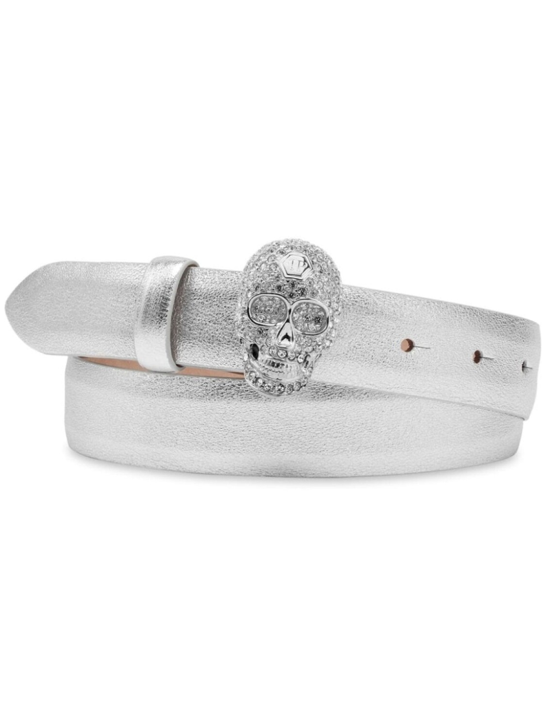 Ремень Skull с эффектом металлик Philipp Plein, серебряный