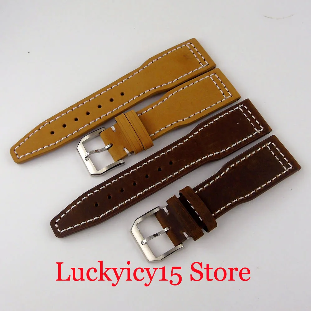 Ремешок для наручных часов из коровьей кожи, темно-коричневый/верблюжий, Ширина 22 мм