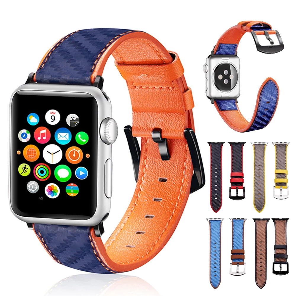 Ремешок для смарт-часов, двухслойный браслет из углеродного волокна и кожи для Apple Watch 7 6 5 4 3 2, 44 мм se 40 мм