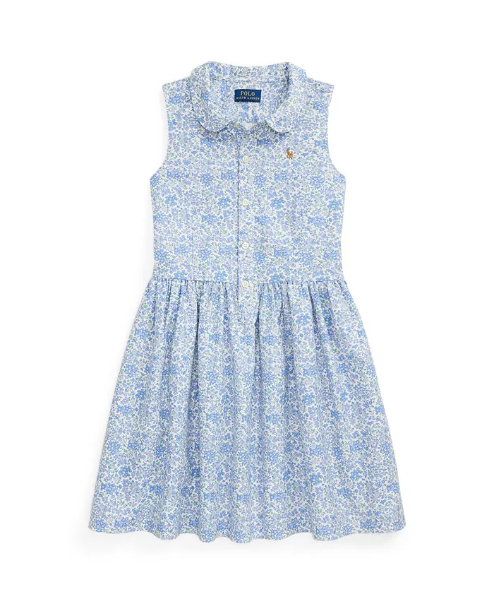 Платье-рубашка Oxford с цветочным принтом для девочек постарше Polo Ralph Lauren, синий