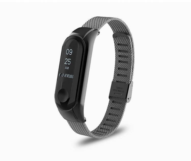 Металлический ремешок Mesh steel design bracelet предназначен для замены оригинального ремешка фитнес браслета Xiaomi Mi Band 3 и 4. Цвет - черный.