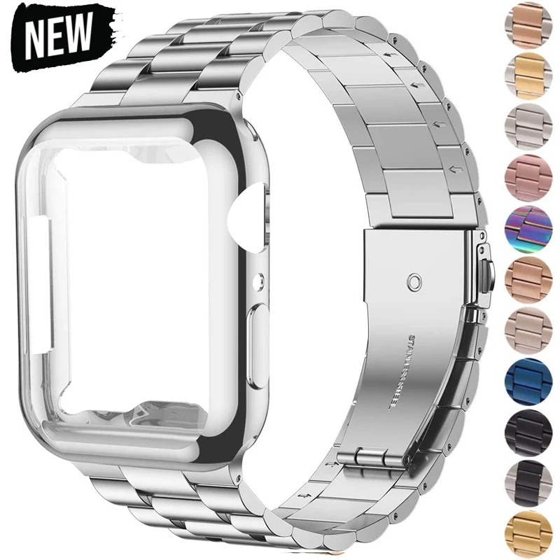 Ремешок для часов, металлический браслет из нержавеющей стали для Apple Watch 7 45 мм 44 мм 40 мм SE Series 8 6 5 4, 38 мм 42 мм 41