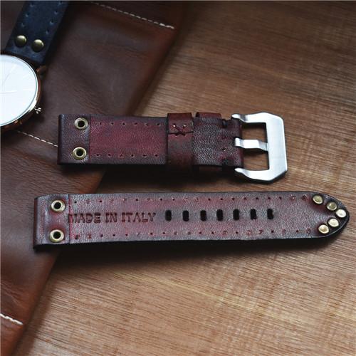 Ремешок для часов ручной работы, винтажные ремешки из натуральной кожи, красный/зеленый/черный/желтый ремешок для часов, ремешок для ремня Panerai, пряжка с резьбой 18 20 22 24 мм 20mm