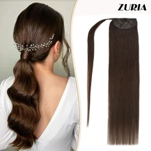 ZURIA Ponytail Human Hair Extensions Machine Remy Straight Hair Extensions Blonde Brown Black Color 12"16"20"24"Clip in Fixation