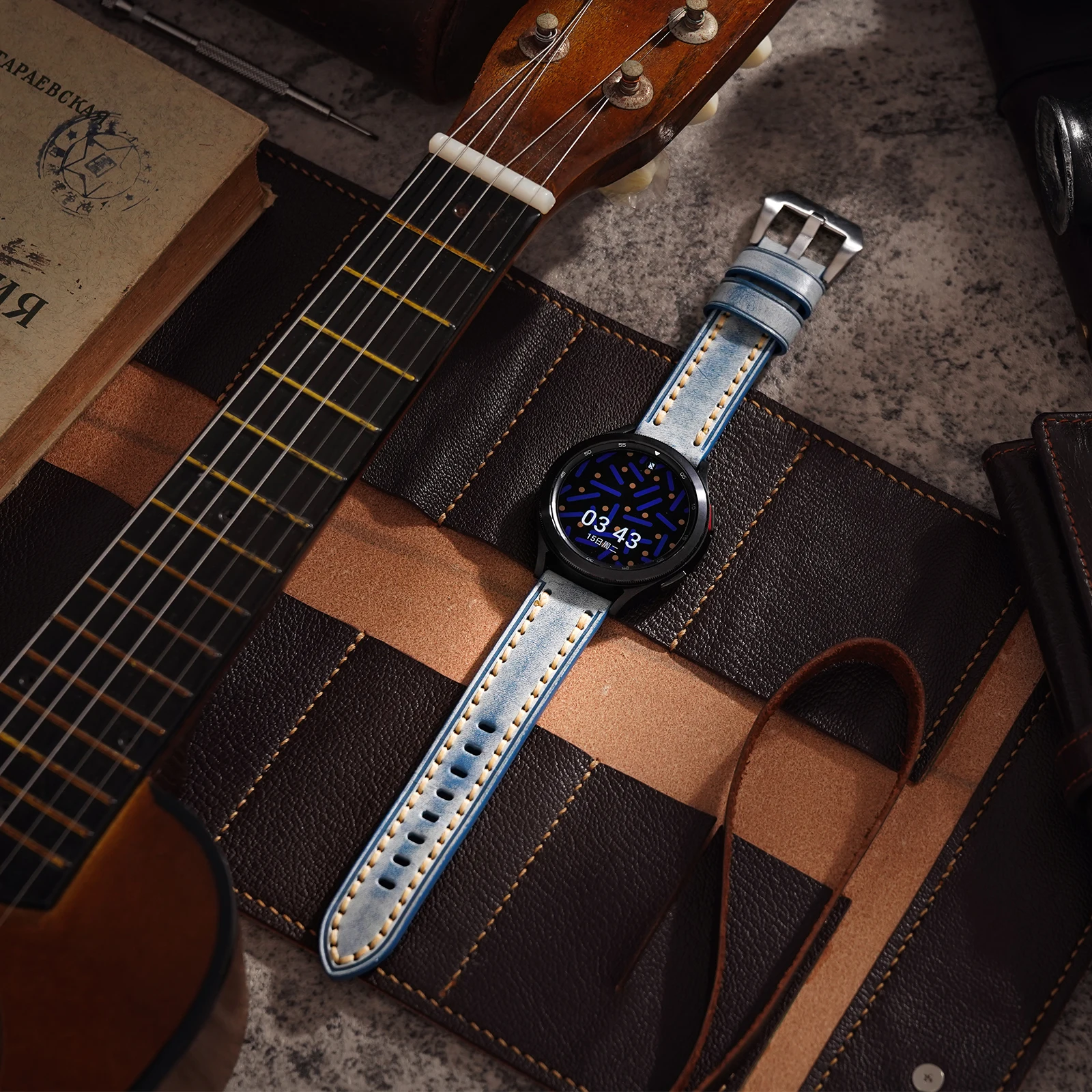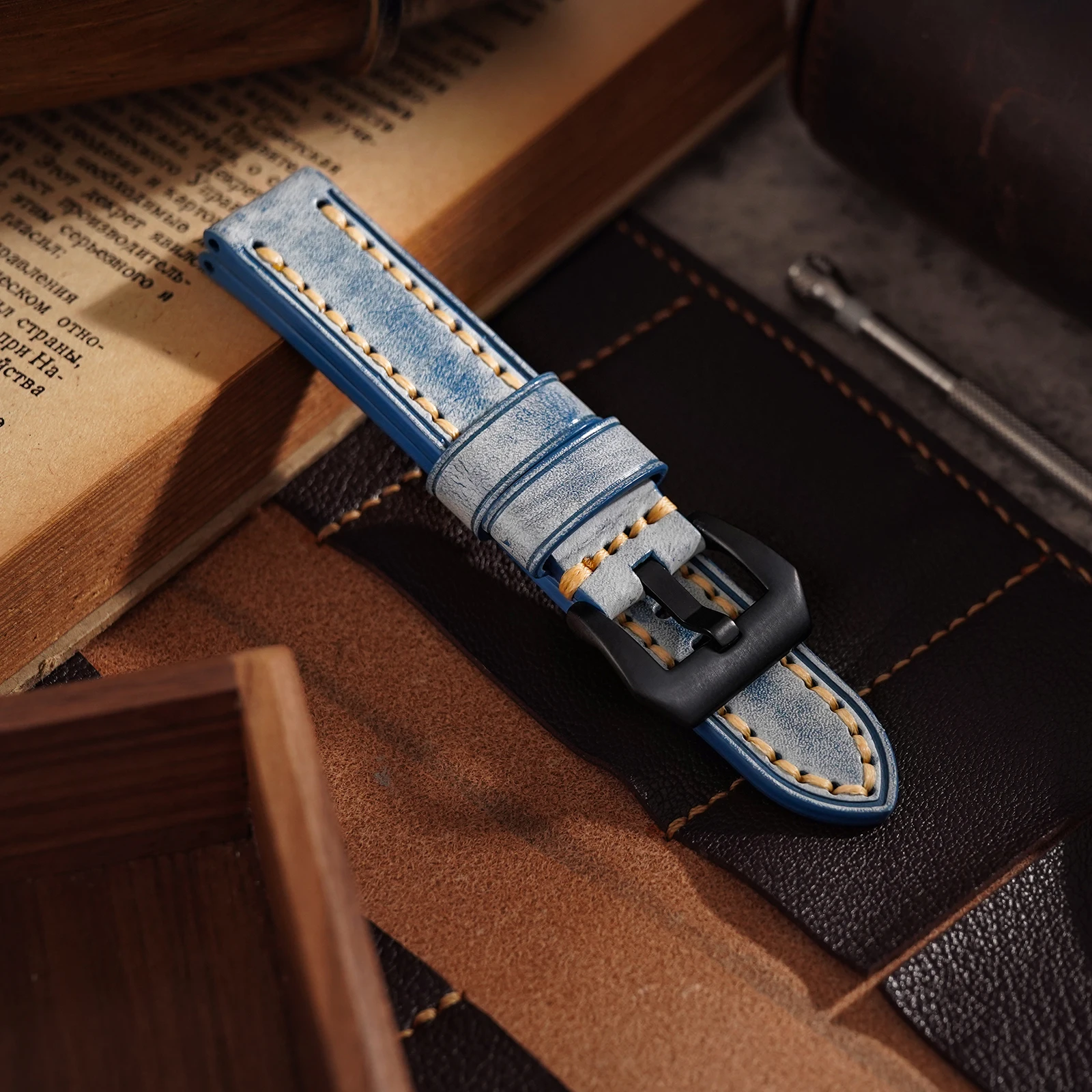 Ремешок для часов ручной работы из воловьей кожи 20 22 24 мм синий винтажный вощеный кожаный ремешок для часов