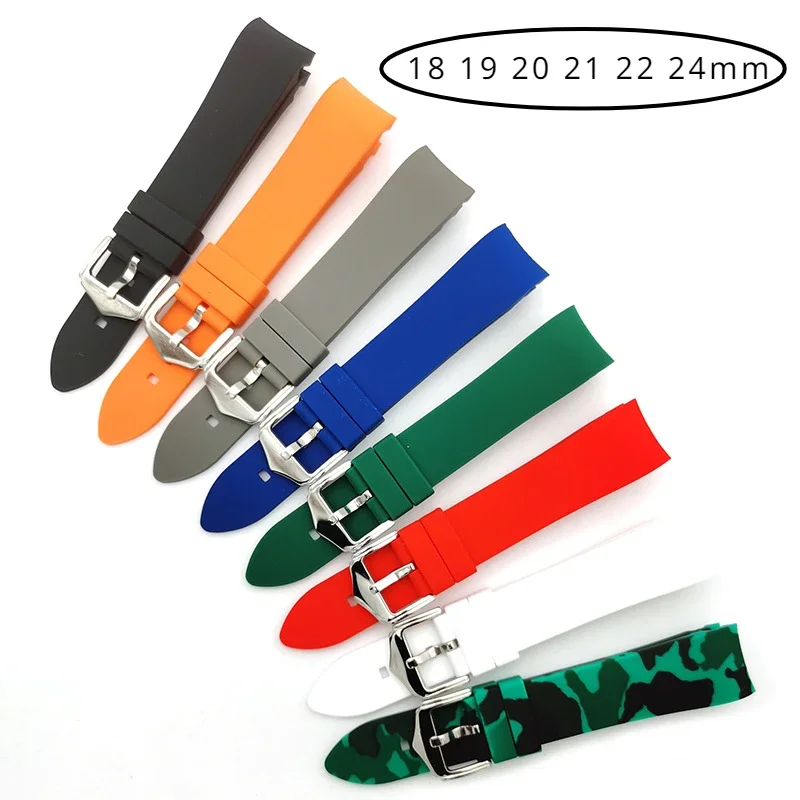 Ремешок для часов универсальный, резиновый браслет для наручных часов с загнутым отверстием, 18 19 20 21 22 24 мм