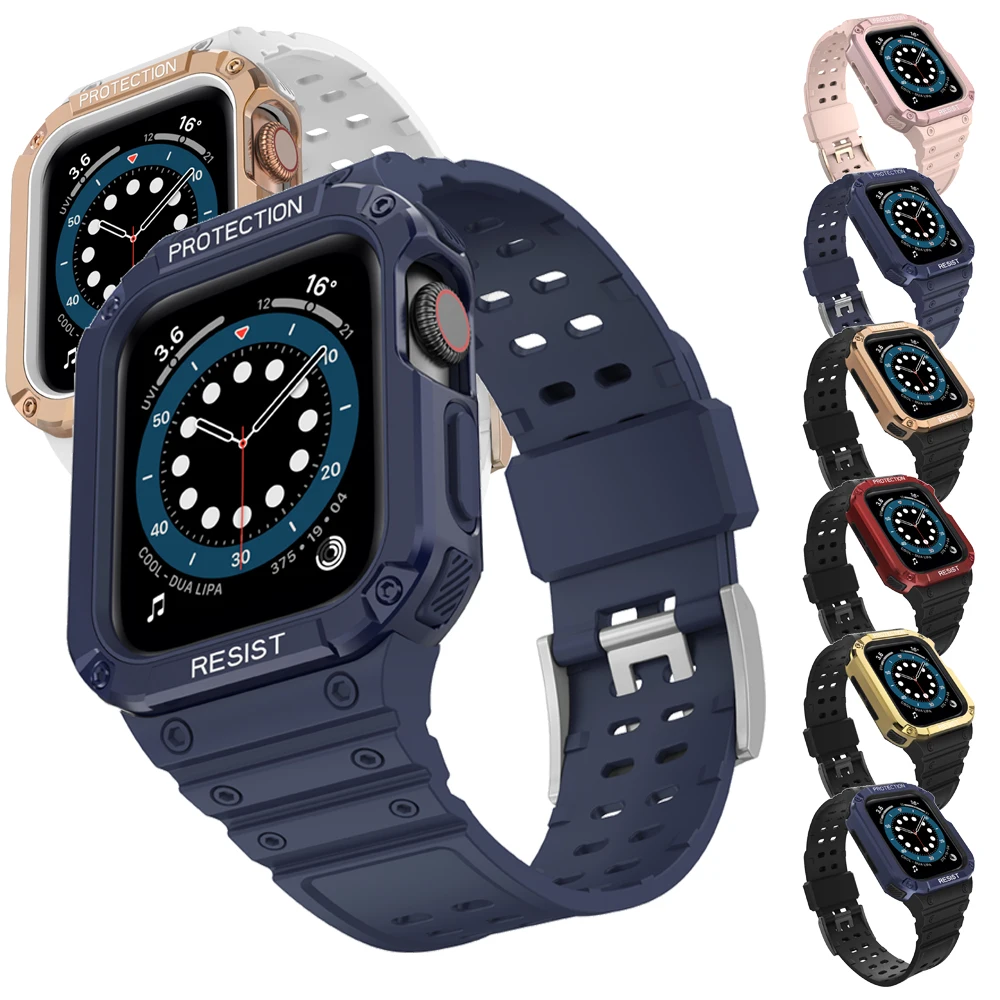 Ремешок из ТПУ и поликарбоната для Apple watch band 41 мм 45 мм 40 мм 44 мм 42 мм 38 мм, силиконовый браслет для iwatch 7 6 SE 5 4 3, наручный чехол