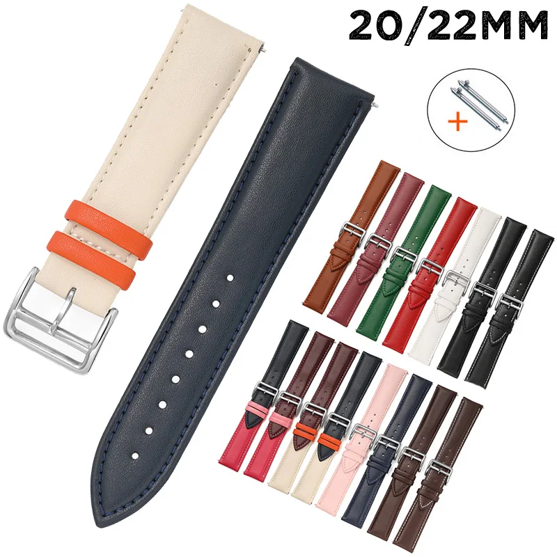 Ремешок из натуральной телячьей кожи для наручных часов, универсальный быстросъемный браслет для мужчин и женщин, 20 мм 22 мм