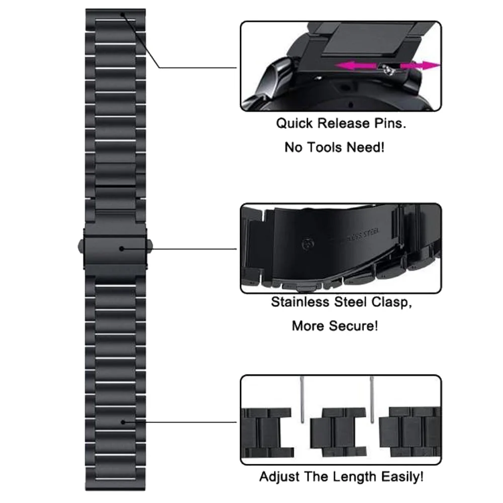 Ремешок из нержавеющей стали для Samsung Galaxy Watch 3 45 46 мм, браслет для наручных часов Gear S3/S2/Active 2 40 44 мм, 22 мм 20 мм