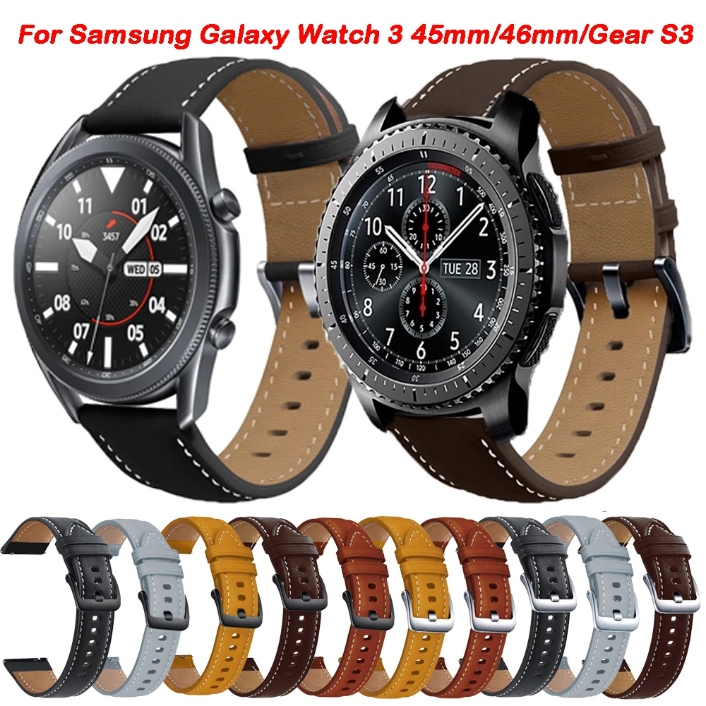 Ремешок кожаный для Samsung Galaxy Watch 3 45 мм 46 мм Gear S3 Frontie, классический смарт-браслет для наручных часов, 22 мм